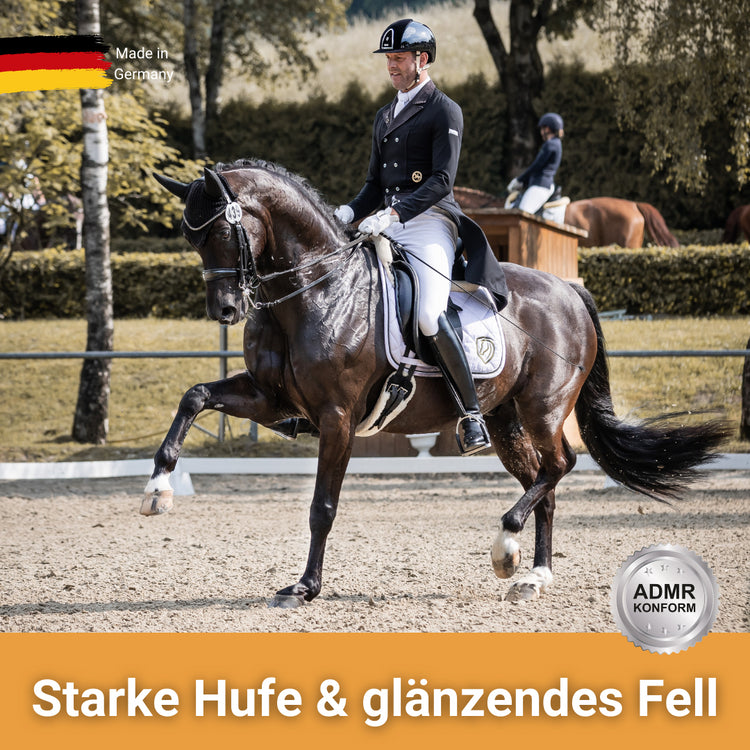 - Gezielt für Hufe, Haut & Fell – unterstützt das Hufwachstum und die Entwicklung eines dichten, glänzenden Haarkleides