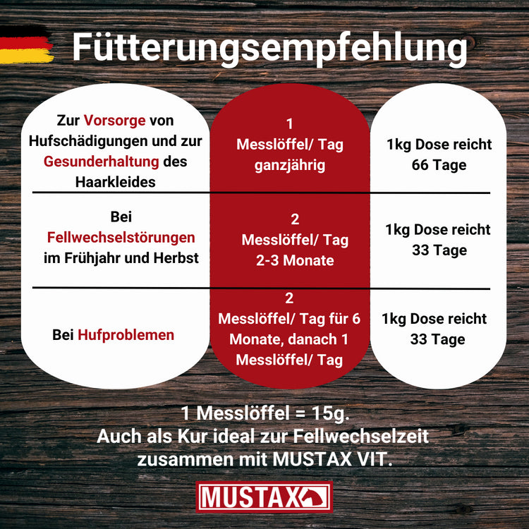- Ideal für alle Pferde im Frühjahr und Herbst als aufeinander abgestimmte Fellwechselkur für deinen Vierbeiner in Kombination mit dem MUSTAX VIT.